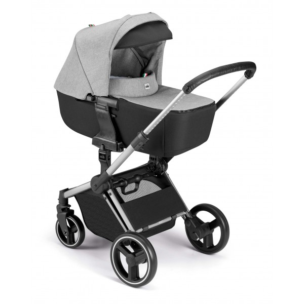 Люлька широкая, полностью выровненная; снабжена системой быстрой установки и функцией качания. Ручка для переноски с тканевым чехлом и магнитной застежкой. Обновленная, удобная система открывания и закрывания основания для проветривания коляски; основание легко (одним нажатием кнопки) поднимается в антирефлюксную позицию под углом в 10 градусов, регулируется в 4 позициях. Капюшон с системой защиты от ветра. В комплект входит матрас для люльки с жестким основанием, дополнительный матрас не потребуется. Мягкий внутренний, съемный чехол люльки изготовлен из 100% хлопка. Накидка на люльку выполнена с увеличенным бортиком, ее так же можно использовать, как накидку на ножки.