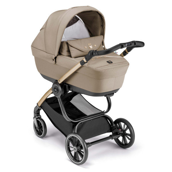 - Просторная люлька оснащена системой быстрой установки/снятия с рамы.