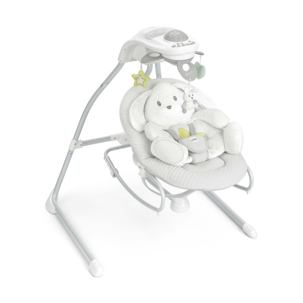 - Качели с вращающимся сиденьем, которые обнимают ребенка, как мама.