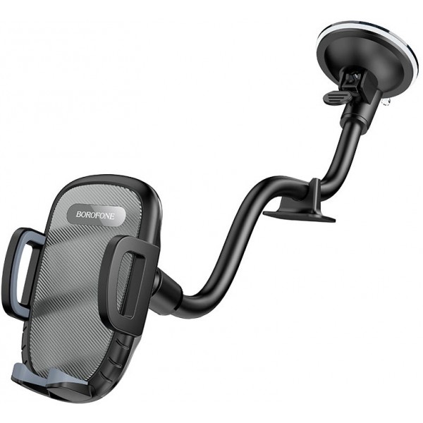 BH54 - это автомобильный держатель от бренда BOROFONE. Универсальная конструкция, проверенная временем, является одной из самых популярных. При помощи присоски на липучке держатель можно крепить на приборную панель (торпедо) или на лобовое стекло. Гибкая и длинная штанга с дополнительным креплением обеспечит надежность фиксации. Современный дизайн держателя впишется в любой интерьер автомобиля.Регулировка по ширине. Чтобы зафиксировать телефон в держателе необходимо пальцем нажать на кнопку сзади сверху и "клешни" держателя раздвинуться, затем вручную их сжать. Чтобы изъять телефон необходимо просто нажать на кнопку с обратной стороны держателя.Регулировка по высоте. Чтобы настроить нижний фиксатор необходимо пальцем нажать на кнопку сзади снизу и нижняя часть опуститься.