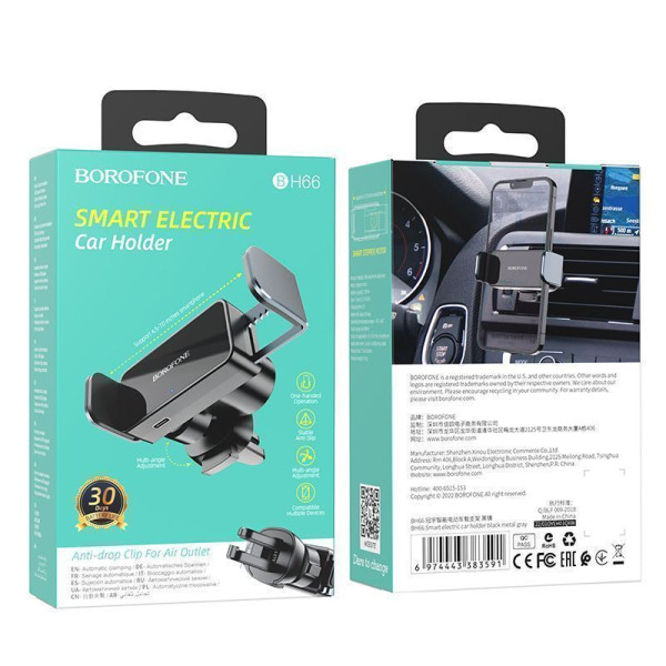 BOROFONE BH66 Smart электрический автомобильный держатель телефона для воздуховода, для 4.5-7 дюймовых мобильных телефонов, со встроенной батареей. 1. Материал: ABS + алюминиевый сплав + линзы. 2. Обработка поверхности: текстурирование + оксидирование. 3. Размеры: 77*32*53мм. Вес: 141г. 4. Ширина зажима: 66-89мм, для 4.5-7 дюймовых мобильных телефонов. 5. Место применения: воздуховод автомобиля. 6. Электрический держатель, после полной зарядки можно использовать около 30 дней. 7. Емкость батареи: 150mA. Полный заряд примерно за 2 часа. |