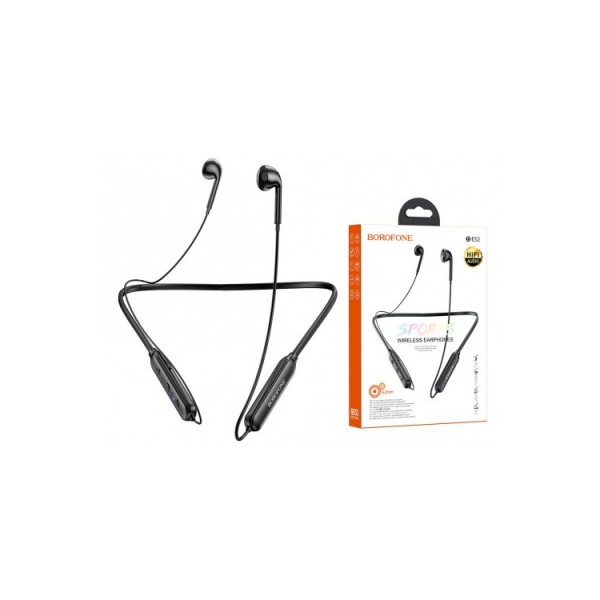 Беспроводные наушники BOROFONE BE52 адаптированы для спортсменов. Они соединяются между собой при помощи шнурка. Их форма позволяет длительное и комфортное ношение наушников. При этом они плотно сидят и не слетают даже при активных занятиях спортом. Преимущества: качественный звук; удобное управление; использование в качестве гарнитуры; модный дизайн. Наушники соединяются с телефоном при помощи Bluetooth. Технология позволяет пользоваться наушниками в радиусе около 10 метров от смартфона. Для регулировки уровня звука и управления используется пульт. Три основных кнопки позволяют в полной мере контролировать воспроизведение, при этом являясь практически незаметными. Наушники имеют встроенный микрофон, что позволяет использовать их во время звонков. Зарядки наушников хватает на 10 часов активного использования.