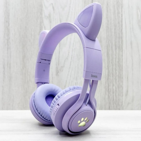 Беспроводные наушники HOCO W39 имеют необычный, яркий и стильный дизайн с ушками кошки. Модель разработана специально для детей. Наушники легкие и удобные. Громкость ограничена 85 децибелами для защиты детского слуха. Подключить наушники Hoco W39 можно к любым устройствам удобным для вас способом — при помощи Bluetooth или аудио-кабеля 3,5 мм. Частотный диапазон на 20-2000 кГц обеспечит высокое качество проигрываемого звука любых тональностей, в независимости от музыкального жанра. С помощью микрофона можно отвечать или отклонять входящие звонки, не доставая телефон из кармана. Наушники имеют складную конструкцию. Корпус изготовлен из прочного пластика. Мягкая полиуретановая подушка накладных наушников способствует лучшей звукоизоляции и комфортному ношению.