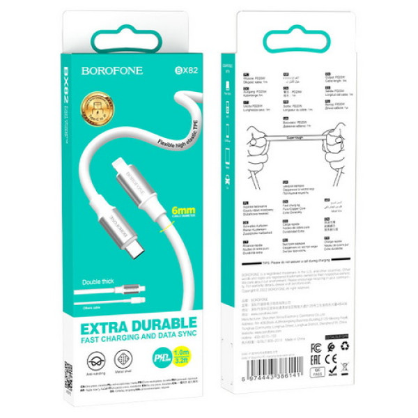 Кабель Borofone BX82 предназначен для передачи данных между гаджетами, а также их подзарядки. Подходит для устройств с разъемом Lightning - Type-C. Кабель имеет общую силу тока в 3А, что позволит быстро заряжать гаджеты. Кабель покрыт крепким TPE слоем, а коннекторы имеют защиту от перегибов. Длина аксессуара составляет 1м.