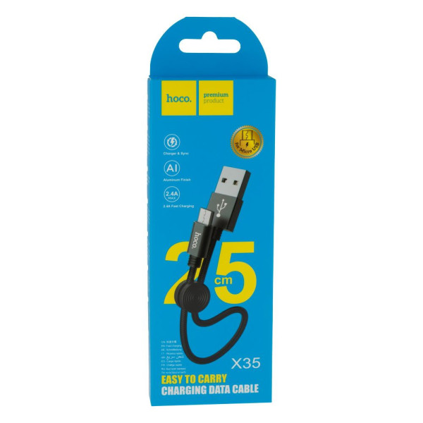 X35 - это высококачественный кабель от бренда hoco, поддерживающий технологии быстрого заряда. Отличительной особенностью кабеля является его длина - 25см, что придает массу удобств при эксплуатации в тех местах, где в большей длине нет необходимости, например, при использовании с power bank. Стильный современный дизайн, а так же прочная надежная тканевая оплетка - все это выделяет данный кабель среди остальных. Данный кабель подойдет как для зарядки, так и для передачи данных с любых устройств с подходящими разъемами.