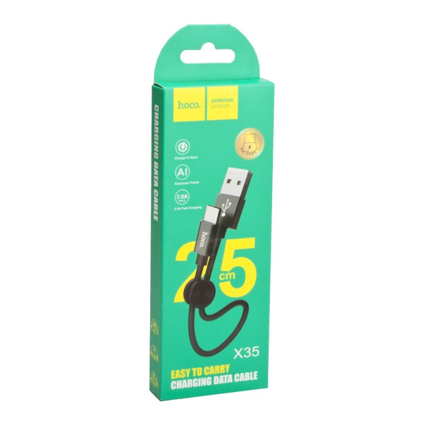 X35 - это высококачественный кабель от бренда hoco, поддерживающий технологии быстрого заряда. Отличительной особенностью кабеля является его длина - 25см, что придает массу удобств при эксплуатации в тех местах, где в большей длине нет необходимости, например, при использовании с power bank. Стильный современный дизайн, а так же прочная надежная тканевая оплетка - все это выделяет данный кабель среди остальных. Данный кабель подойдет как для зарядки, так и для передачи данных с любых устройств с подходящими разъемами.