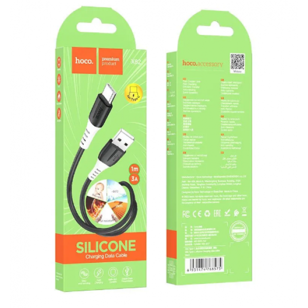 USB Кабель Type-C, HOCO, X82, силиконовый, 1м, черный 1. Длина: 1 м. Вес: 21 г. 2. Внешний материал: силикон. 3. Материал соединения: силикон. 4. Основной: (43/0.08)*2+(13/0.08)*2 OD3.5mm. 5. Поддерживает ток 3A. 6. Экономичный силиконовый кабель.