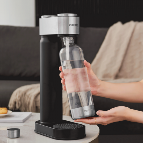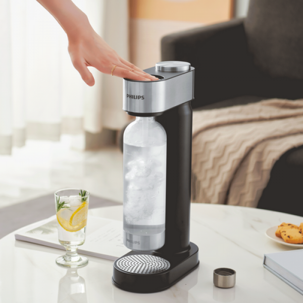 Стильный дизайн. Управление - механическая кнопка. Настройка уровня газирования. Одного цилиндра газирования хватит на 60 литров вкусной газированной воды, что заменит вам 120 одноразовых бутылок по 0,5л.